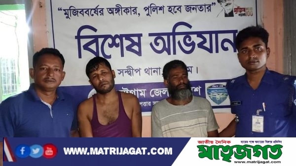 নিজস্ব প্রতিবেদকঃ সন্দ্বীপের মগধরা ইউনিয়নে ব্যবসায়ী মুস্তাফিজুর রহমানের ঘরে ডাকাতির ঘটনার ১২ ঘন্টার মধ্যে দুই ডাকাতকে গ্রেপ্তার করেছে সন্দ্বীপ থানা পুলিশ। গেপ্তার ডাকাতরা জিজ্ঞাসাবাদে ডাকাতিতে জড়িত থাকার কথা স্বীকার করছে।বরিবার(৫ মার্চ)বিকালে গোপন সংবাদের ভিত্তিতে অভিযান চালিয়ে তাদেরকে গ্রেপ্তার করেন সন্দ্বীপ থানার এএসআই মো. হুমায়ুন ও মো. আল আমিন।