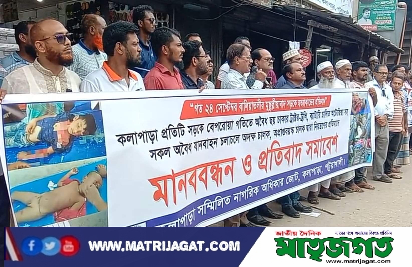 অদক্ষ চালক দ্বারা অবৈধ ছয় চাকার ট্রাকর-ট্রলি ও অটোরি চলাচলের প্রতিবাদে মানববন্ধন ও সমাবেশ