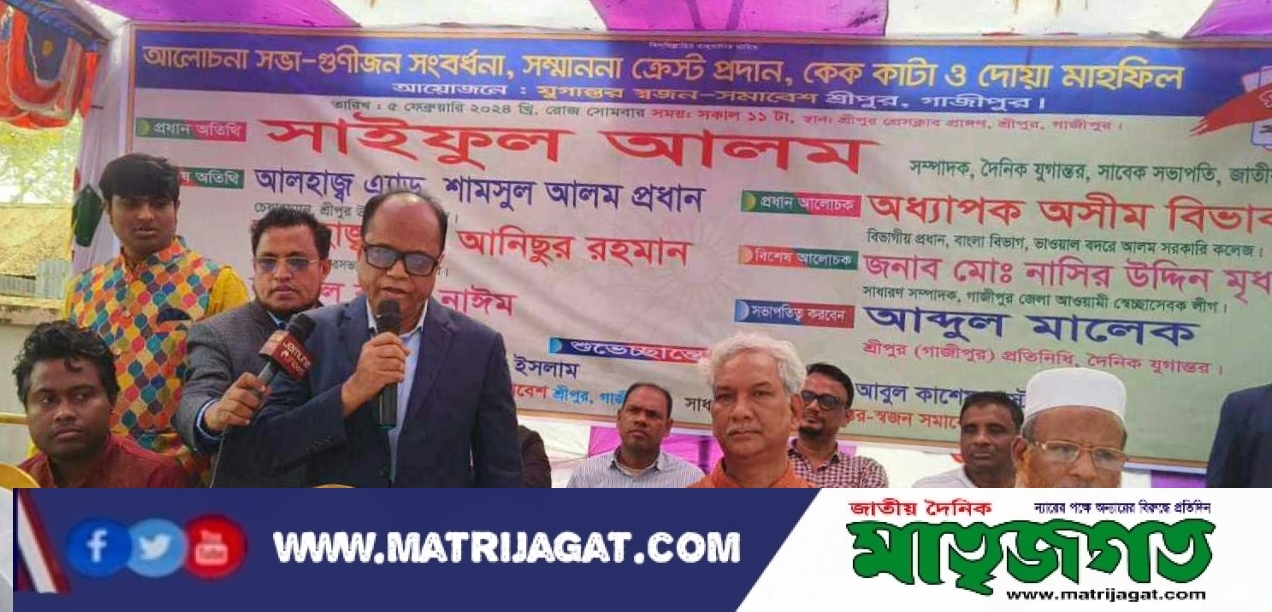 (৫'ই ফেব্রুয়ারি ২০২৪) সোমবার দুপুরে শ্রীপুর প্রেসক্লাব মিলনায়তনে যুগান্তরের শ্রীপুর প্রতিনিধি আব্দুল মালেকের সভাপতিত্বে প্রধান অতিথি হিসেবে উপস্থিত ছিলেন যুগান্তর পত্রিকা'র সম্পাদক ও জাতীয় প্রেসক্লাবের সাবেক সভাপতি, সাইফুল আলম।