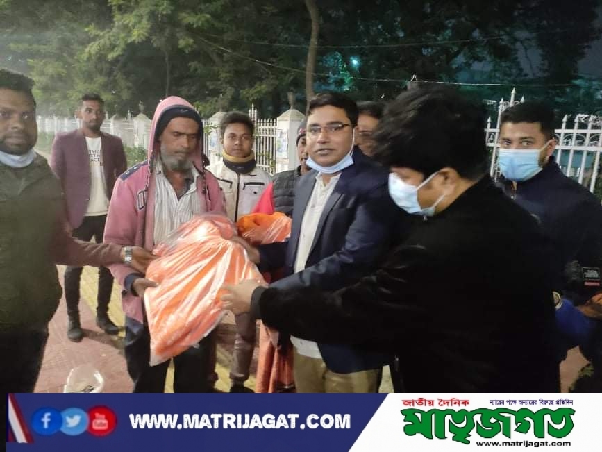 ২১ জানুয়ারী শুক্রবার রাত ১০টায় টিএসসি,শহীদ মিনার,পলাশী,কমলাপুর রেলস্টেশন,শাহবাগ, কাওরান বাজার,মগবাজার,হাতিরঝিলসহ রাজধানীর বিভিন্ন স্থানে শীতবস্ত্র বিতরণ করেছে সংগঠনের নেতাকর্মীরা।