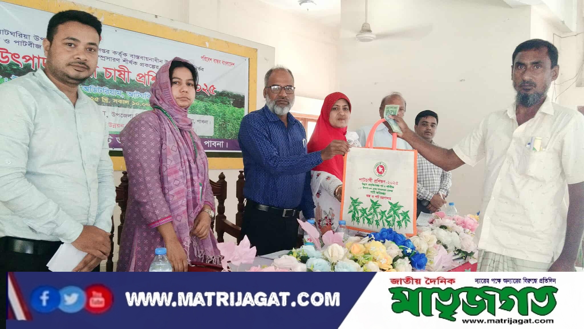 "সোনালী আঁশের সোনার দেশ পরিবেশ বান্ধব বাংলাদেশ" এই স্লোগানকে সামনে রেখে পাবনা জেলার আটঘরিয়া উপজেলা পাট অধিদপ্তর কর্তৃক বাস্তবায়নাধীন উন্নত প্রযুক্তি নির্ভর পাট ও পাটবীজ উৎপাদন এবং সম্প্রসারণ প্রকল্পের আওতায় পাটবীজ উৎপাদনকারী চাষি প্রশিক্ষণ অনুষ্ঠিত হয়েছে। আজ বুধবার ৫ নভেম্বর আটঘরিয়া উপজেলা প্রশাসন ও পাট অধিদপ্তর কর্তৃক আয়োজিত প্রশিক্ষণে এসময় প্রধান অতিথির হিসেবে উপস্থিত থেকে বক্তব্য রাখেন উপজেলা নির্বাহী কর্মকর্তা মিনহাজুল ইসলাম। সভাপতিত্ব করেন পাবনা পাট উন্নয়ন কর্মকর্তা মোঃ মামুনার রশিদ। বক্তব্য রাখেন অতিরিক্ত সচিব পাট অধিদপ্তর ঢাকার মরিয়ম বেগম, মুখ্য পরিদর্শক পাট অধিদপ্তর পাবনার সজনী আক্তার, উপজেলা কৃষি অফিসার কৃষিবিদ মাহমুদা মোতমাইন্না। উপসহকারী পাট উন্নয়ন কর্মকর্তা পারভেজ রানা,জাতীয় কৃষি পদক প্রাপ্ত কৃষক শ্রী বিপ্লব কুমার সেন,জাতীয় কৃষি পদক প্রাপ্ত কৃষক দুলাল মৃর্ধা। উপজেলা ও পৌর সভাসহ মোট ৭৫ জন পাটচাষি এই প্রশিক্ষণে অংশ গ্রহণ করেন।