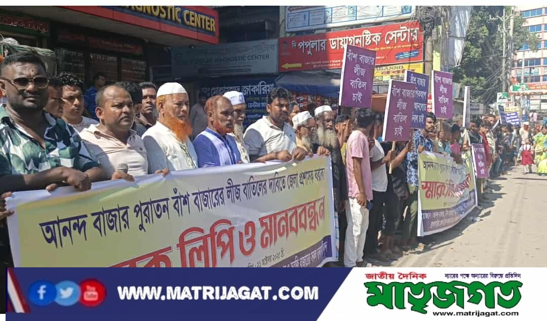 আনন্দবাজার ও পুরাতন বাঁশ বাজারের ইজারা বাতিলের দাবিতে ব্রাহ্মণবাড়িয়ায় মানববন্ধন ও প্রতিবাদ সমাবেশ