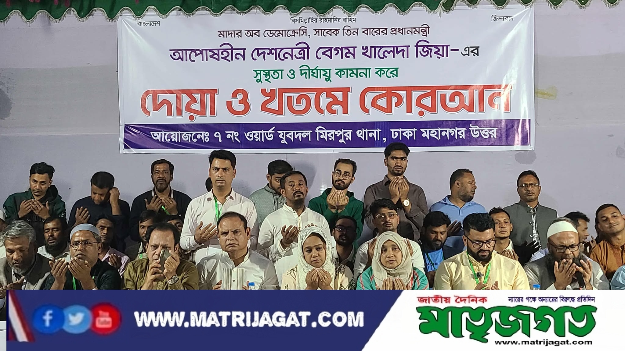 আপোষহীন নেত্রী বেগম খালেদা জিয়ার সুস্থতা কামনায় মিরপুরে যুবদল কর্তৃক দোয়ার আয়োজন