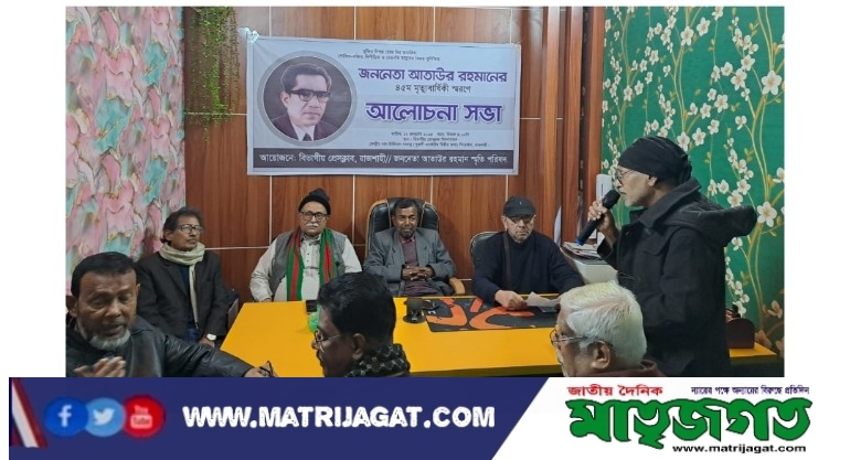 রোববার (১২ জানুয়ারী) বিকেল ৪ টায় নগরীর শিরোইলে বিভাগীয় প্রেসক্লাব রাজশাহীর হলরুমে জননেতা আতাউর রহমান স্মৃতি পরিষদ ও বিভাগীয় প্রেসক্লাব রাজশাহী যৌথভাবে এ আলোচনা সভার আয়োজন করে।