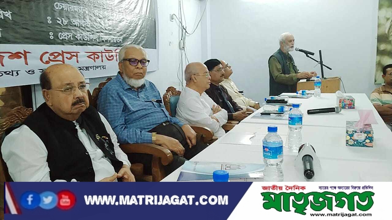 নিজস্ব প্রতিবেদকঃ ২০২৩ উপলক্ষে অদ্য সকাল ১১ টায় বাংলাদেশ প্রেস কাউন্সিল মিলনায়তনে এক আলোচনা সভা ও দোয়া অনুষ্ঠান অনুষ্ঠিত হয়। বাংলাদেশ প্রেস কাউন্সিলের সচিব (অতিরিক্ত সচিব) জনাব শ্যামল চন্দ্র কর্মকার স্বাগত বক্তব্য প্রদান করেন ও অনুষ্ঠান সঞ্চালনা করেন। আলোচনা সভায় সভাপতিত্ব করেন প্রেস কাউন্সিলের মাননীয় চেয়ারম্যান বিচারপতি মো. নিজামুল হক নাসিম। আলোচনা সভায় সম্মানিত অতিথি হিসেবে বক্তব্য রাখেন আওয়ামী লীগের উপদেস্টামন্ডলীর সদস্য ও বাংলাদেশ প্রেস কাউন্সিলের সম্মানিত সদস্য জনাব মোজাফ্ফর হোসেন পল্টু, দি ডেইলি অবজারভার পত্রিকার সম্পাদক ও প্রেস কাউন্সিলের সম্মানিত সদস্য জনাব ইকবাল সোবহান চৌধুরী, বিশিষ্ট কবি, বাংলা একাডেমির মহাপরিচালক ও বাংলাদেশ প্রেস কাউন্সিল এর সম্মানিত সদস্য জনাব মুহম্মদ নূরুল হুদা, বাংলাদেশ ফেডারেল সাংবাদিক ইউনিয়নের সাবেক সভাপতি ও বাংলাদেশ প্রেস কাউন্সিলের সম্মানিত সদস্য জনাব মনজুরুল আহসান বুলবুল, দৈনিক জাতীয় অর্থনীতির সম্পাদক ও প্রকাশক ও বাংলাদেশ প্রেস কাউন্সিলের সম্মানিত সদস্য জনাব এম জি কিবরিয়া চৌধুরী। এছাড়া উপস্থিত ছিলেন বাংলাদেশ ফেডারেল সাংবাদিক ইউনিয়নের নির্বাহী কমিটির সদস্য ও বাংলাদেশ প্রেস কাউন্সিলের সম্মানিত সদস্য ড. উৎপল কুমার সরকার। আলোচনা সভার শুরুতে উপস্থিত সবাই দাড়িয়ে জাতির পিতা বঙ্গবন্ধু শেখ মুজিবুর রহমান ও ১৯৭৫ সালের ১৫ আগস্টে শাহাদাহবরণকারী সকলের প্রতি শ্রদ্ধা জানিয়ে এক মিনিট নিরবতা পালন করেন। আলোচনা সভায় আলোচকবৃন্দ বলেন, বঙ্গবন্ধু ও বাংলাদেশ অভিন্ন সত্ত
