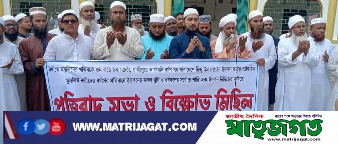 দেশে মুসলিম নারীদের ওপর ইসকন সংশ্লিষ্টদের নির্যাতনের প্রতিবাদে ও সংগঠনটি নিষিদ্ধের দাবিতে পটুয়াখালীর গলাচিপায় মানববন্ধন ও বিক্ষোভ মিছিল করেছে উপজেলা ইমাম পরিষদ।