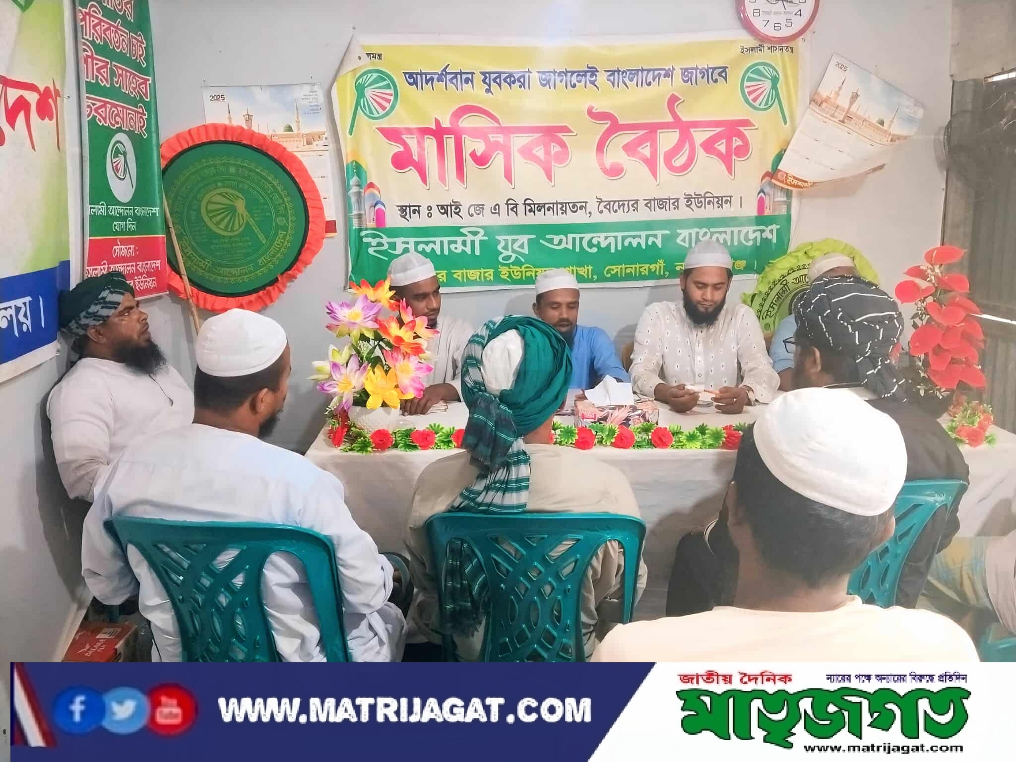 ইসলামী আন্দোলন বাংলাদেশ (চরমোনাই)-এর সহযোগী সংগঠন ইসলামী যুব আন্দোলন বৈদ্যের বাজার ইউনিয়ন শাখার মাসিক সভা ২৬ অক্টোবর (রবিবার) সফলভাবে সম্পন্ন হয়েছে। সভায় সভাপতিত্ব করেন সংগঠনের সভাপতি জনাব মোঃ হাবিবুর রহমান হাবিব।