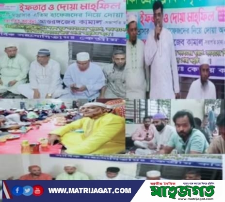 ঢাকা প্রেস ক্লাব পরিবারের পক্ষ থেকে পবিত্র কুরআনের এতিম হাফেজ ও ২০ টি মাদ্রসার এতিম শিক্ষার্থীসহ স্থানীয় গন্যমান্য ব্যাক্তিদের নিয়ে এক ইফতার ও দোয়া মাহফিল অনুষ্ঠিত হয়। বৃহস্পতিবার সংগঠনের সভাপতি আওরঙ্গজেব কামালের সভাপতিত্বে ঢাকা জেলার আশুলিয়ার ইয়ারপুরের দারুল ফালাহ মাদ্রাসায় এ অনুষ্ঠান অনুষ্ঠিত হয়। এ সময় সভাপতি তার স্বাগত বক্তব্যে বলেন, ঢাকা প্রেস ক্লাব সব সময় অসহায় নির্যাতিত মানুষের জন্য নিরলস ভাবে কাজ করে চলেছে।বর্তমানে সাংবাদিক নির্যাতন ও হয়রানী ব্যাপক হারে বেড়েছে আমরা এর প্রতিকার চাই। সরকারকে স্বাধীন সাংবাদিকতার পরিবেশ সৃষ্টি করতে হবে। অনুষ্ঠানে এ সময় প্রধান অতিথি হিসাবে বক্তব্য রাখেন বাংলাদেশ সেন্ট্রাল প্রেসক্লাবের প্রতিষ্ঠাতা সভাপতি ও জাতীয় দৈনিক মাতৃজগত পত্রিকার সম্পাদক খান সেলিম রহমান। তিনি বলেন,ঢাকা প্রেস ক্লাব আওরঙ্গজেব কামালের হাত ধরে দুর্বার গতিতে এগিয়ে যাচ্ছে। সাংবাদিকতার পরিবেশ এবং সাংবাদিকদের ঐক্যবদ্ধ করতে কাজ করে যাচ্ছে। আমি সব সময় ঢাকা প্রেস ক্লাবের সাথে ছিলাম,আছি থাকবো । অনুষ্ঠানে প্রধান আলোচক হিসাবে বক্তব্য রাখেন দারুল ফালাহ মাদ্রাসার প্রিন্সিপাল ও মসজিদের খতিব মুফতি জুনায়েত (দাঃ)। তিনি এ সময় সাংবাদিকদের সত্য সংবাদ পরিবেশন করার আহবান করেন। অনুষ্ঠানে বিশেষ অতিথি হিসাবে ছিলেন,দক্ষিণ অঞ্চল সাংবাদিক ইউনিয়নের উপদেষ্টা মোঃ আব্দুল মান্নান ভূঁইয়া,বাংলা টিভির ষ্টাফ রিপোর্টার আলমগীর হোসেন নিরব। অনুষ্ঠঅনে অন্যদের মধ্যে উপস্থিত ছিলেন,ঢাকা প্রেস ক্লাবের সাংগঠনিক সম্পাদক শেখ ফরিদ আহম্মেদ চিশতী,মোঃ শামীম আহম্মেদ,এস এম মনিরুজ্জামান,দপ্তর সম্পাদক কে এম মোহম্মাদ হোসেন রিজভী,তথ্য ও প্রযুক্তি বিষয়ক সম্পাদক মোঃ জাকির আহম্মেদ জীবন,মানবাধিকার বিষয়ক সম্পাদক মোঃ সোহেল রানা, শ্রম ও মজুরী বিষয়ক সম্পাদক মোঃ আমিনুল ইসলাম,কার্যকারী সদস্য মোঃ রিপন মিয়া,মোঃ মনির হোসেন,আব্দুল্লাহ- আল মনির,শেখ শিহাব হোসেন,মোঃ মোশারেফ হোসেন,মোঃ মোফাজ্জেল হোসেন রাজু,মোঃ সৌরভ,মীর জেসান হোসেন তৃপ্তী,মোঃ জনি,মোঃ সানোয়ার হোসেন,মোঃ আনোয়ার হোসেন,মোঃ রানা,সাচ্ছু