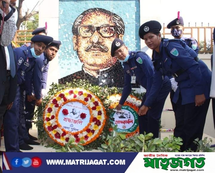পুলিশ সুপার পুষ্পস্তবক অর্পণ শেষে জাতির পিতার প্রতি সন্মান প্রদর্শণ করেন এবং সেখানে কিছুক্ষণ নীরবে দাঁড়িয়ে থেকে জাতির পিতার স্মৃতির প্রতি গভীর শ্রদ্ধা নিবেদন ও আত্মার শান্তি কামনা করে বিশেষ মোনাজাত করা হয়। এছাড়াও কর্মসূচির মধ্যে ছিল আলোচনা সভা, শতকণ্ঠে ৭ মার্চের ভাষন ও পরিস্কার পরিচ্ছনতা অভিযান ।