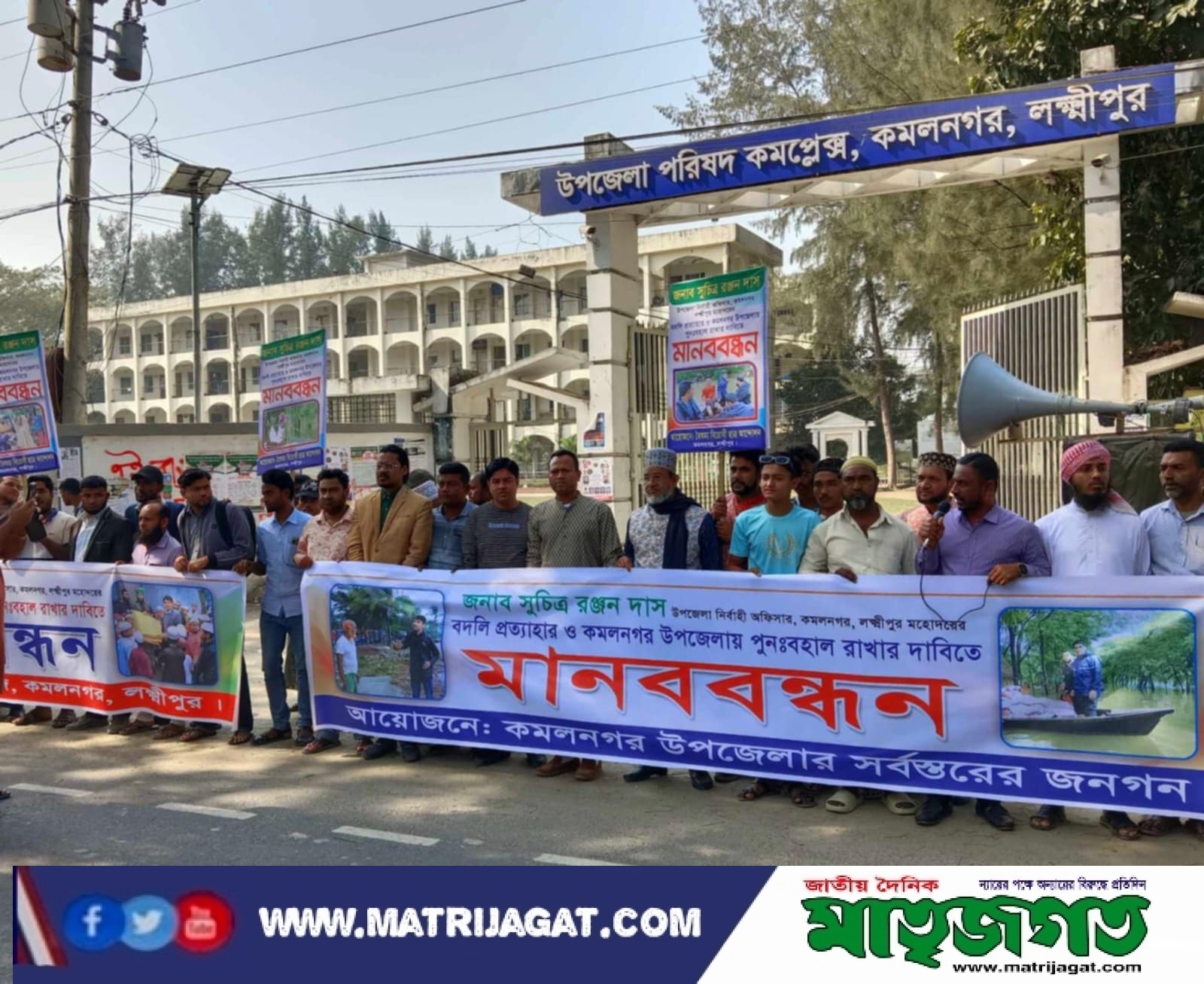 মোঃ নুর হোসেন,কমলনগর(লক্ষ্মীপুর) প্রতিনিধিঃ লক্ষ্মীপুরের কমলনগর উপজেলা নির্বাহী কর্মকর্তা (ইউএনও) সুচিত্র রঞ্জন দাসের বদলি প্রত্যাহারের দাবিতে মানববন্ধন করা হয়েছে।