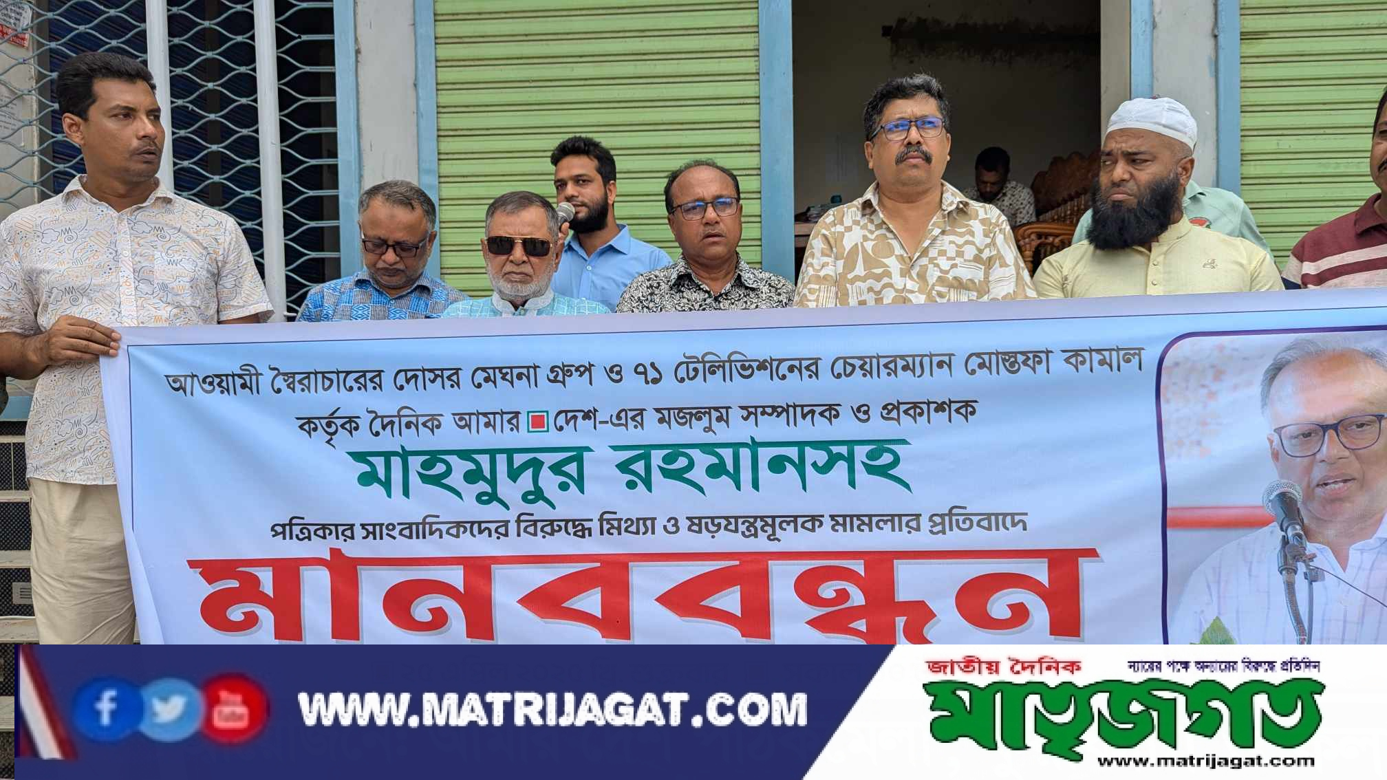কলাপাড়ায় ‘আমার দেশ’ সম্পাদকের বিরুদ্ধে মামলার প্রতিবাদে মানববন্ধন