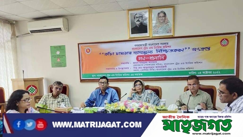 "কাঁচা চামড়ার ন্যায্যমূল্য নিশ্চিতকরণ" সংক্রান্ত গণ-শুনানি ৪ অক্টোবর ২০২২ সকাল ১০ টায় বাংলাদেশ ট্রেড এন্ড ট্যারিফ কমিশনের সভাকক্ষে “কাঁচা চামড়ার ন্যায্যমূল্য নিশ্চিতকরণ" সংক্রান্ত গণ-শুনানি অনুষ্ঠিত হয়।