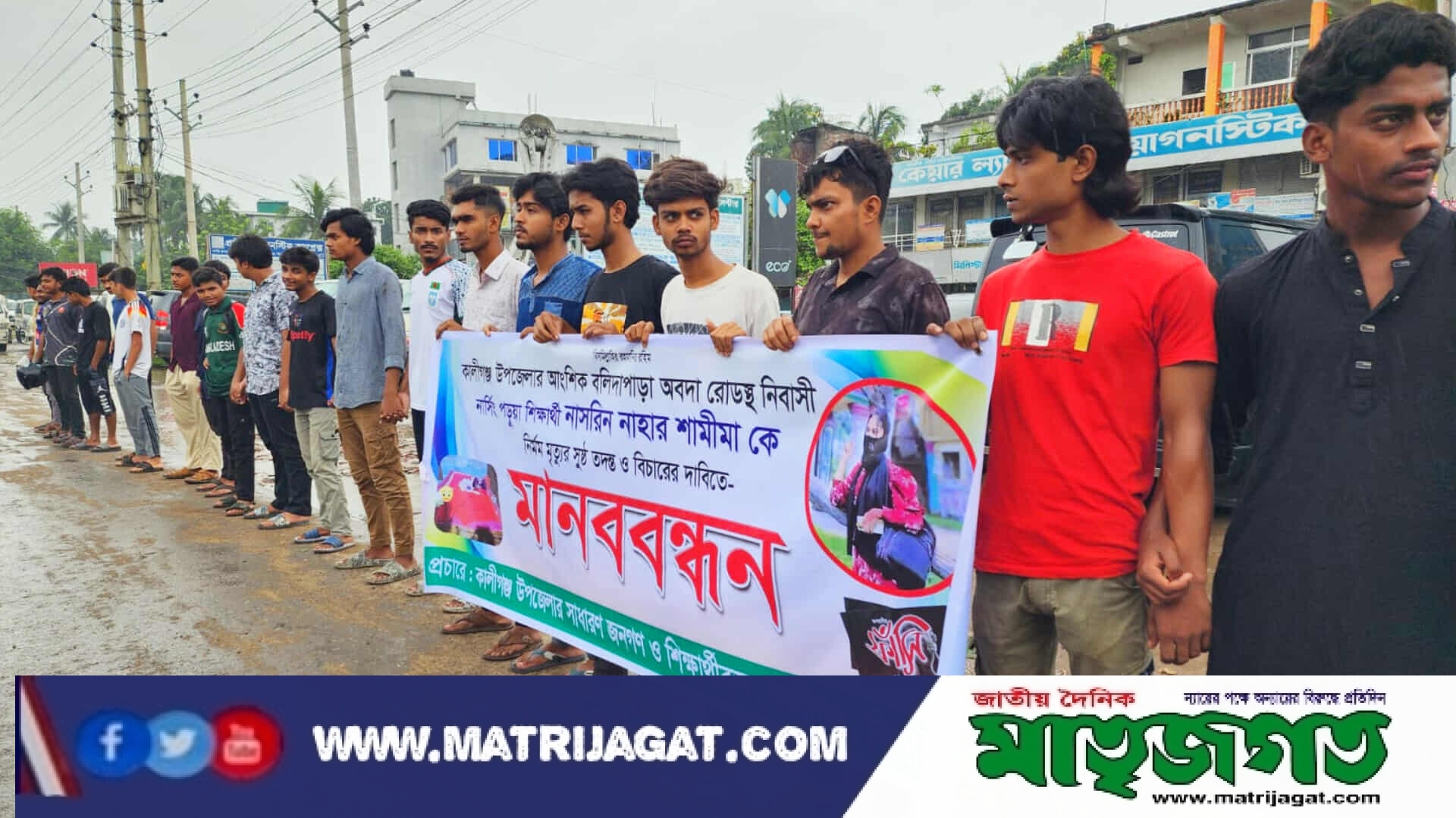 কালীগঞ্জে নার্সিং শিক্ষার্থী শামিমা মৃত্যুর ঘটনা তদন্ত ও বিচারের দাবিতে মানববন্ধন