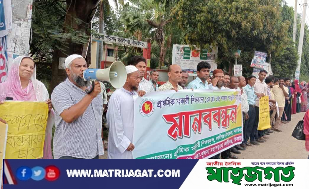 মোঃ শাকিল রেজা স্টাফ রিপোর্টারঃ ঝিনাইদহের কালীগঞ্জে বেতন বৈশম্য দূর করে প্রাথমিক বিদ্যালয়ের সহকারী শিক্ষকদের ১০ম গ্র্রেড উন্নতির জন্য মানববন্ধ কর্মসূচী পালিত হয়েছে। সোমবার বিকাল সাড়ে ৪টার দিকে ঝিনাইদহ-খুলনা মহাসড়কে কালীগঞ্জ উপজেলা গেটে এ মানববন্ধন কর্মসূচী পালিত হয়। বৈষম্য নিরসনে প্রাথমিক শিক্ষক সমন্বয় পরিষদের ব্যানারে এ কর্মসূচী পালিত হয়।