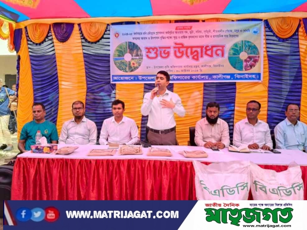 মোঃ শাকিল রেজা স্টাফ রিপোর্টারঃ ঝিনাইদহের কালীগঞ্জ উপজেলার ১১টি ইউনিয়নের ক্ষুদ্র ও প্রান্তিক কৃষকের মাঝে বিনামূল্যের বীজ ও সারায়নিক সার বিতরণ করা হয়েছে। বুধবার সকালে উপজেলা কৃষি অফিসের আয়োজনে বিতরন অনুষ্টানের উদ্বোধন করেন প্রধান অতিথি উপজেলা নির্বাহী অফিসার দেদারুল ইসলাম। উল্লেখ্য, ২০২৪-২৫ অর্থ বছরে রবি মৌসুমে প্রণোদনা কর্মসূচির আওতায় উপজেলার ২ হাজার ৯৪০ জন কৃষককে গম, ভূট্টা, সরিষা, সূর্যমুখী, শীতকালীন পেয়াজ, মসুর ও খেসারি ফসলের আবাদ ও উৎপাদন বৃদ্ধির লক্ষে এসব প্রণোদণা দেওয়া হয়।