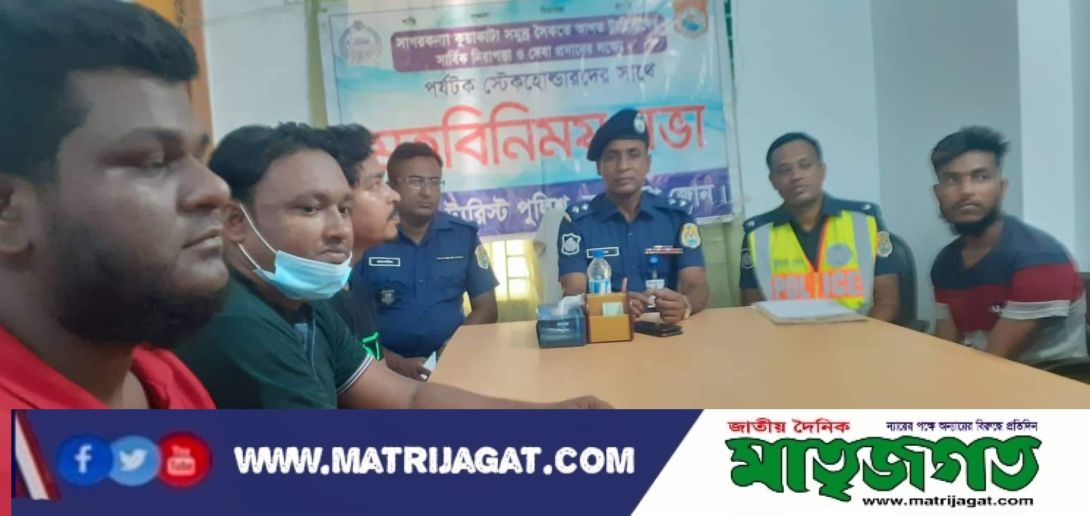 কুয়াকাটা ট্যুরিস্ট পুলিশের উদ্যোগে কুয়াকাটা সমুদ্র সৈকতে আশা আগত পর্যটকদের সেবার মান বৃদ্ধি ও পর্যটক হয়রানি রোধ করার লক্ষ্যে ট্যুরিস্ট পুলিশ কুয়াকাটা জোন কার্যালয়ে পর্যটক স্টেকহোল্ডার ক্যামেরাম্যান দের সাথে মতবিনিময় সভা অনুষ্ঠিত হয়,