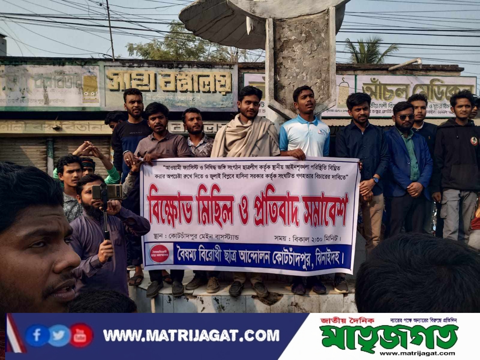 প্রতিবাদ সমাবেশে বৈষম্য বিরোধী ছাত্র আন্দোলনের নেতারা বলেন, দীর্ঘ ১৭ বছর ক্ষমতায় থেকে খুন গুম ধর্ষণ ও অর্থপাচারসহ বহু কুকর্মের রূপকার নিষিদ্ধ ঘোষিত জঙ্গি সংগঠন ছাত্রলীগকে হুশিয়ার করে বলতে চাই, আপনারা অজ্ঞাত স্থানে শান্তিতে আছেন, শান্তিতে থাকেন। আমাদের শান্তিপ্রিয় কোটচাঁদপুরকে অশান্ত এবং আইন শৃঙ্খলা পরিস্থিতিকে বিঘ্নিত করার অপচেষ্টা করলে। আমরা ছাত্র জনতা (নিষিদ্ধ ঘোষিত জঙ্গি সংগঠন ছাত্রলীগের) আপনারদের অপচেষ্টাকে ব্যর্থ করে দেব ইনশাআল্লাহ।