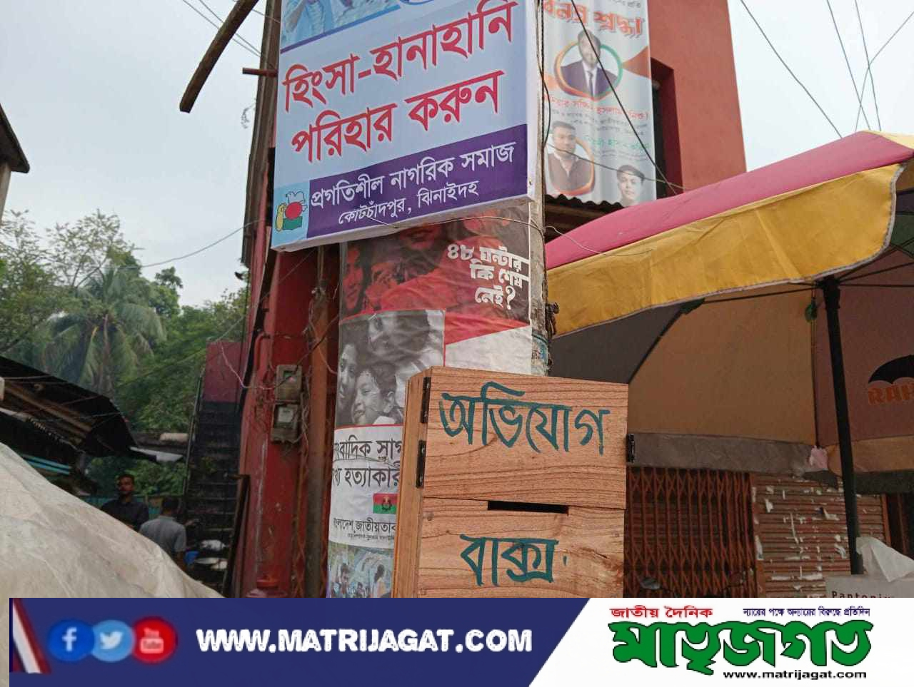 ঝিনাইদহের কোটচাঁদপুরে চাঁদাবাজি, লুটতরাজ, অরজগতা ও হুমকি–ধামকিসহ সকল অসামাজিক কাজ রুখতে শহরের মোড়ে মোড়ে অভিযোগ বাক্স স্থাপন করেছেন স্থানীয় বিএনপি -জামায়াতের নেতৃবৃন্দ। ইতোমধ্যে সাধারণ মানুষ এর সফলতাও পেয়েছেন বলে জানিয়েছেন পৌর বিএনপির সভাপতি এস কে এম সালাহউদ্দিন বুলবুল (সিডল)। এ দিকে মহতি উদ্যোগকে সাধুবাদ জানিয়েছেন সুধীসমাজ। জানা যায়, গত ৫ আগষ্ট সরকার বদলের পর সারাদেশের ন্যায় কোটচাঁদপুরেও দূর্বৃত্তরা দলীয় নাম ভাঙ্গিয়ে চাঁদাবাজি, লুটতরাজ সহ বিভিন্ন হুমকি–ধামকি দিয়ে আসছে কিছু দুষ্কৃতকারী। এতে করে সাধারণ মানুষের মধ্যে আতংক বিরাজ করছিল। অনেকে তাদের ভয়ে এলাকা থেকে পালিয়ে ছিলেন।