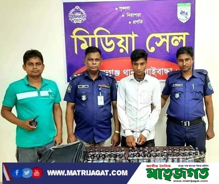 গাইবান্ধা জেলাকে মাদক মুক্ত করার লক্ষ্যে পুলিশ সুপার মোঃ তৌহিদুল ইসলাম (পিপিএম) নিদের্শে এবং গোবিন্দগঞ্জ থানার অফিসার ইনচার্জ মোঃ ইজার উদ্দিন এর সার্বিক তত্বাবধানে এসআই(নিঃ) মোঃ আব্দুল্লাহ আল মামুন,এসআই(নিঃ) মোঃ রফিকুল ইসলাম, এএসআই(নিঃ) মোঃ সাইফুল-২, সঙ্গীয় ফোর্স সহ গোবিন্দগঞ্জ থানাধীন বোয়ালিয়া মৌজাস্থ বাঁশহাটির পশ্চিম পাশ্বে ঢাকা-রংপুর মহাসড়কের পাকা রাস্তার উপর সোনার মদিনা পরিবহনের বাস চেকিং করাকালে ২৭ই মার্চ ২০২১ইং রোজ রবিবার বিকাল ৪:৩০ ঘটিকার সময় বাসযাত্রী মোঃ ওবায়দুল ইসলাম(২৩) কে ৪০ বোতল ফেনসিডিল আটক করে।