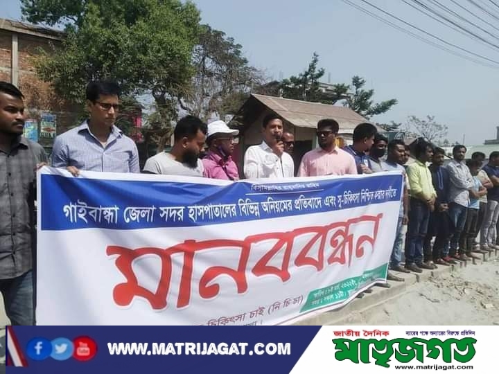গাইবান্ধা জেনারেল হাসপাতালে অনিয়ম,সুচিকিৎসার দাবিতে নিচিচার মানববন্ধন