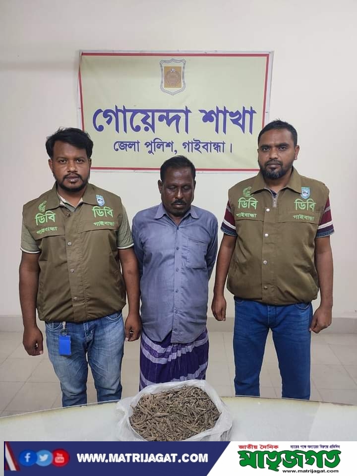 গাইবান্ধা জেলা ডিবি পুলিশের মাদক বিরোধী বিশেষ অভিযানে ১ কেজি গাঁজা সহ মাদক ব্যবসায়ী আটক
