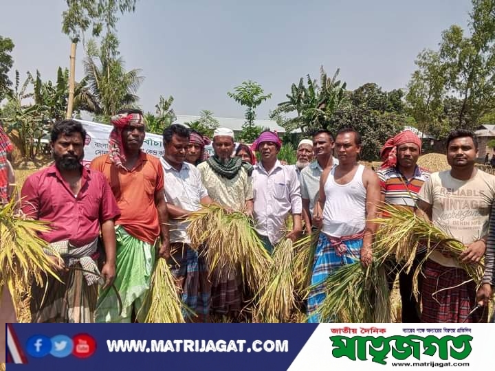 এসময় বর্গাচাষী ভোলা মিয়া জানান মহান সৃষ্টি কর্তার নিকট প্রধানমন্ত্রী কৃষক রত্ন শেখ হাসিনা সহ ধান কাটতে আসা কৃষক লীগ নেতা-কর্মীদের জন্য দোয়া কামনা করেছেন।