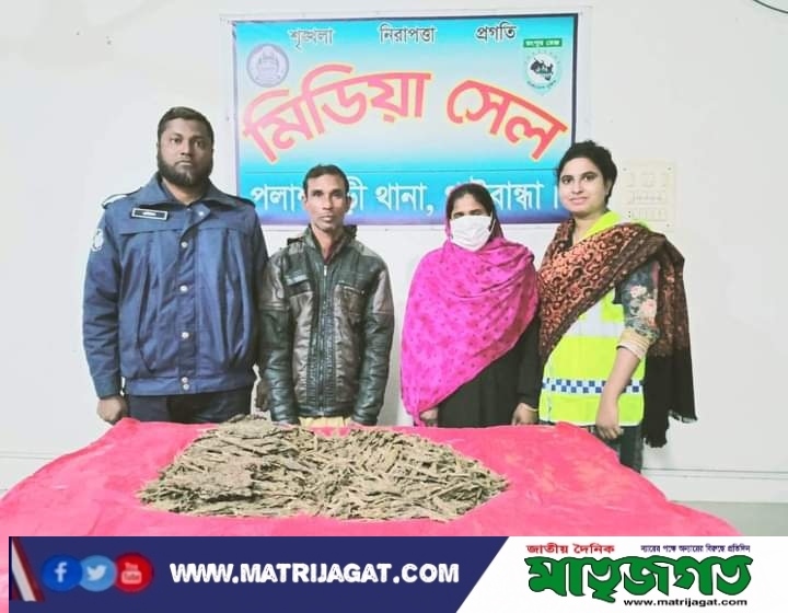 থানা সূত্রে জানা যায়,জেলা পুলিশ সুপার মোঃ কামাল হোসেন এর নির্দেশনা মোতাবেক গাইবান্ধা জেলার পলাশবাড়ী থানাকে মাদকমুক্ত রাখার লক্ষ্যে থানা অফিসার ইনচার্জ মোঃ মাসুদ রানা এর সার্বিক তত্ত্বাবধানে থানা পুলিশের এসআই(নিঃ) রাজু ইসলাম, এর নেতৃত্বে গাড়ি চেকিং এর ডিউটি করাকালে আজ ১৮ জানুয়ারী বেলা পৌনে তিন ঘটিকার সময় যাত্রী বাহী বাস BEST ONE, যাহার রেজি নম্বর রংপুর –ব-১১-০০৪৭ থামিয়ে চেকিং করাকালে ১। আঃ মজিদ (৫০) ও তার স্ত্রী ২। মোছাঃ লাইলি বেগম (৪০) এর নিকট থাকা ব্যাগের ভিতর লাল পলিথিন দ্বারা মোড়ানো অবস্থায় ০৩(তিন) কেজি গাঁজা উদ্ধার পূর্বক গ্রেফতার করে।