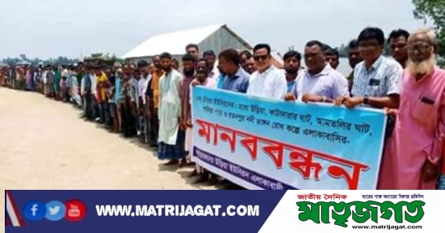 গাইবান্ধা ফুলছড়ি উপজেলায় নদী ভাঙ্গন রক্ষায় এলাকাবাসীর মানববন্ধন।