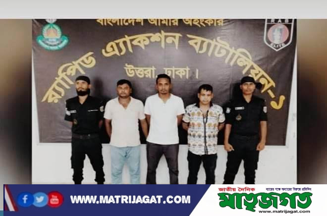 আটককৃতরা হলো দিনাজপুরের বিরল উপজেলার মোখলেছপুর গ্রামের মৃত নজরুল ইসলামের ছেলে ফারুক হোসেন (৫৫), সিরাজগঞ্জের শাহজাদপুর উপজেলার সরাতৈল গ্রামের মৃত আছের আলীর ছেলে আলা উদ্দিন (৪৪) এবং নড়াইলের লোহাগড়া উপজেলার চাপুলিয়া গ্রামের মৃত লিয়াকত আলীর ছেলে রুবেল হোসেন (৩৪)। এ সময় তাদের কাছ থেকে গোয়েন্দা (ডিবি) পুলিশ পরিচয়ে প্রতারণার কাজে ব্যবহৃত দুইটি গোয়েন্দা (ডিবি) পুলিশের জ্যাকেট, একটি খেলনা ওয়াকিটকি সেট, ওয়াকিটকি রাখার জন্য একটি মোবাইল কেস, একটি নোটবুক, তিনটি মোবাইল সেট, একটি ড্রাইভিং লাইসেন্সসহ নগদ টাকা উদ্ধার করা হয়।