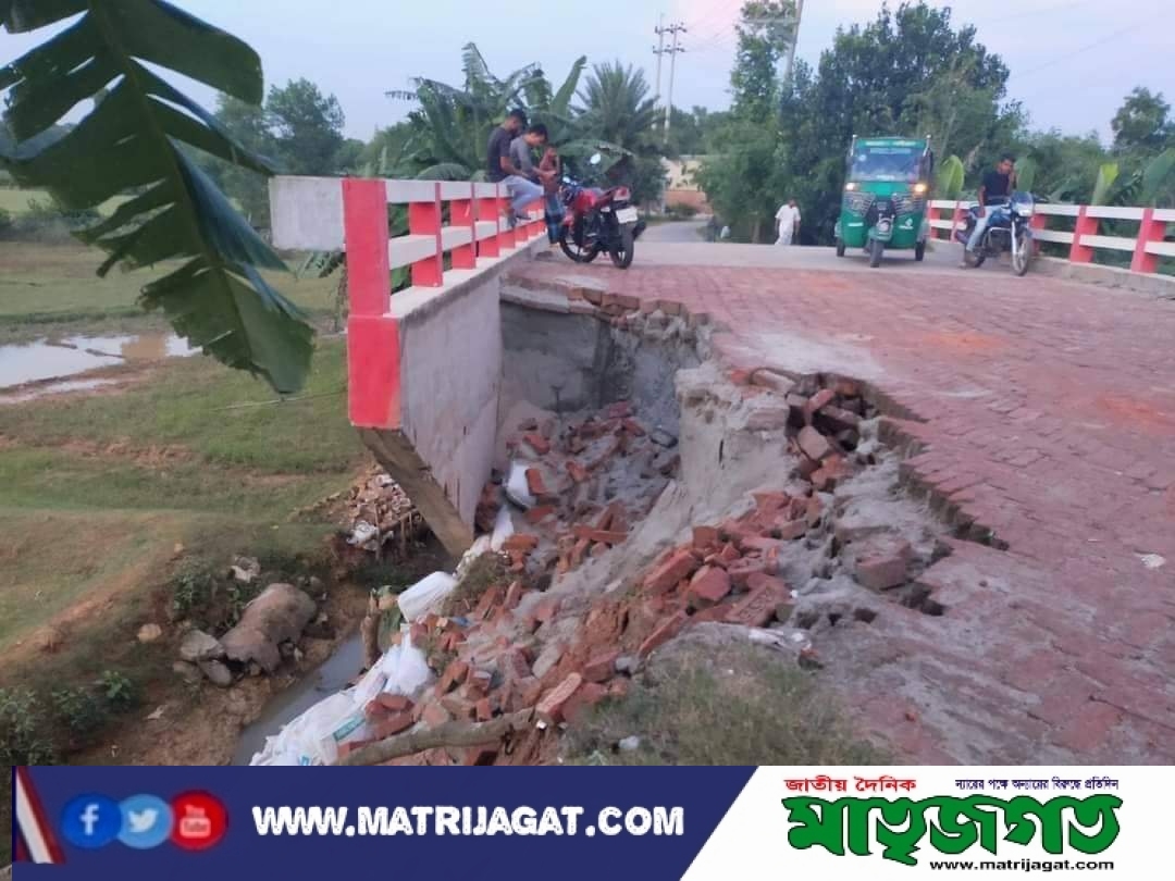 গতকাল শনিবার সরেজমিন দেখা যায়, সেতুর প্রবেশমুখের পশ্চিম পাশের অর্ধেকের বেশি অংশ ভেঙে বালে মিশে গেছে। এখনো ভাঙন অব্যাহত। এরপরও ঝুঁকি নিয়ে চলছে যানবাহন। ভাঙন অব্যাহত থাকলে এ সড়কে যান চলাচল পুরোপুরি বন্ধ হয়ে যাওয়ার আশঙ্কা করছেন স্থানীয়রা।