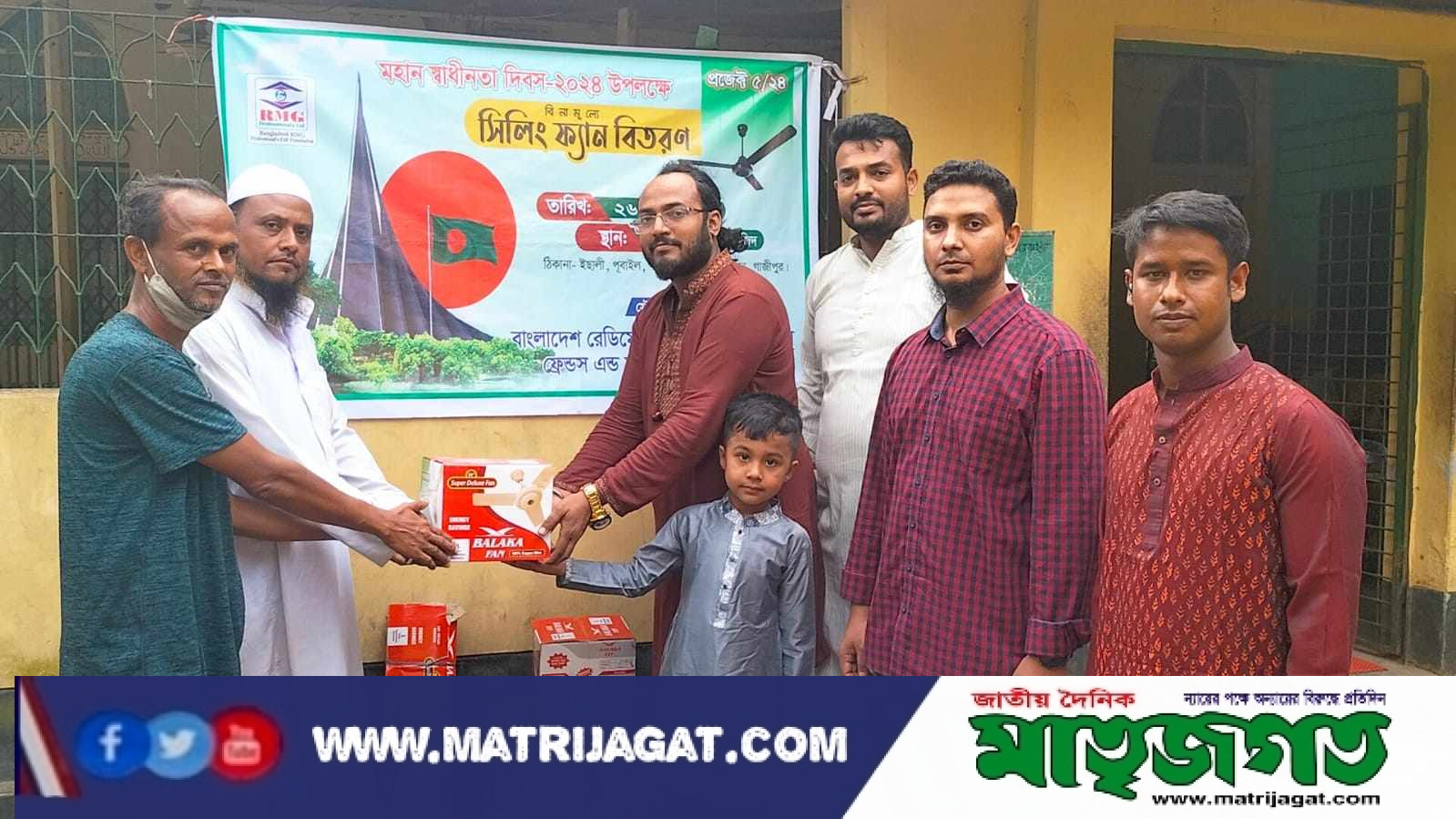 গাজীপুরে আরএমজি প্রফেশনালস্ এফএনএফের উদ্যোগে সিলিং ফ‍্যান বিতরণ