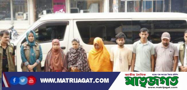 ১/নীলফামারী জেলার কিশোরগঞ্জ থানার রনচন্ডি গ্রামের দেলোয়ার হোসেনের ছেলে মোঃ লিয়ন মিয়া (২৫), ২/ একই এলাকার মোঃ এবাদুল ইসলামের ছেলে মোঃ মোজাহিদুল ইসলাম (২৩), ৩/লালমনিরহাট জেলার হাতিবান্ধা থানার দই খাওয়া গ্রামের মৃত আনসার আলীর ছেলে মোঃ হুমায়ন কবির (৩৬), ৪/নীলফামারী জেলার কিশোরগঞ্জ থানার ঘনচন্ডি গ্রামের রিয়াজুল ইসলামের মেয়ে রাজিয়া সুলতানা (২২), ৫/একই এলাকার রাশিদুল ইসলামের মেয়ে মোছাঃ রিপা আক্তার (২১), ৬/মোছাঃ রিপা আক্তারের ছোট বোন মোছাঃ রিখা মনি (১৭)।