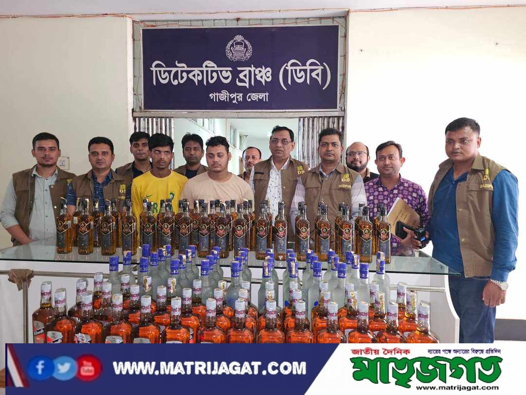 গাজীপুরে বিপুলসংখ্যক বিদেশি মদের বোতলসহ ২ গ্রেফতার