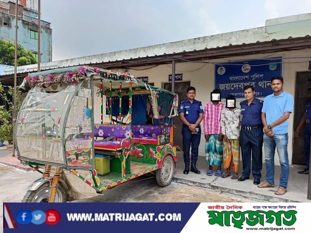 গাজীপুর জেলার জয়দেবপুর থানাধীন রক্ষিতপাড়া সাকিনস্থ ঢাকা-ময়মনসিংহ মহা সড়কের পূর্বপার্শ্বে জনৈক আনোয়ার হোসেন এর দোকানের সামনে কতিপয় চোর একটি ব্যাটারী চালিত চোরাই অটোরিক্সা বিক্রয় করার উদ্দেশ্যে অবস্থান করাকালীন সময় জয়দেবপুর থানার অফিসার ইনচার্জ জনাব মাহাতাব উদ্দিন এর দিক নির্দেশনায় এসআই/মোঃ নাজমুল হাসান সঙ্গীয় অফিসার ও ফোর্স সহ অভিযান পরিচালনা করিয়া চোর চক্রের ১। মোঃ আক্তার হোসেন(৩০), পিতা-মোঃ সুলতান, গ্রাম- চাওবন, থানা- শ্রীপুর, জেলা -গাজীপুর, ২। মোঃ ফজলুল হক ওরফে ফজল মিয়া(৪০), পিতা-মৃত নাজিম উদ্দিন , গ্রাম- উত্তর ইটাখোলা, থানা- হালুয়াঘাট, জেলা -ময়মনসিংহ, এ/পি সাং- পালেরপাড়া (সাখাওয়াত হোসেন এর বাড়ীর ভাড়াটিয়া),থানা- বাসন, জেলা -গাজীপুরসহ মোট ০২ জনকে আটক পূর্বক একটি তিন চাকা বিশিষ্ট ব্যাটারী চালিত অটোরিক্সা উদ্ধার করে। উদ্ধারকৃত ব্যাটারী চালিত অটোরিক্সার মূল্য অনুমান-১,২০,০০০/- (এক লক্ষ বিশ হাজার) টাকা ।এ সংক্রান্তে জয়দেবপুর থানায় একটি নিয়মিত মামলা রুজু হয় এবং আসামীদেরকে বিজ্ঞ আদালতে প্রেরন করা হয়।