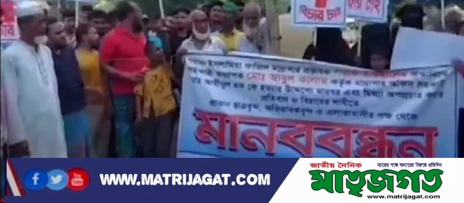 গাজীপুরে মাদ্রাসার অফিস সহকারীকে মারধরের প্রতিবাদে মানববন্ধন