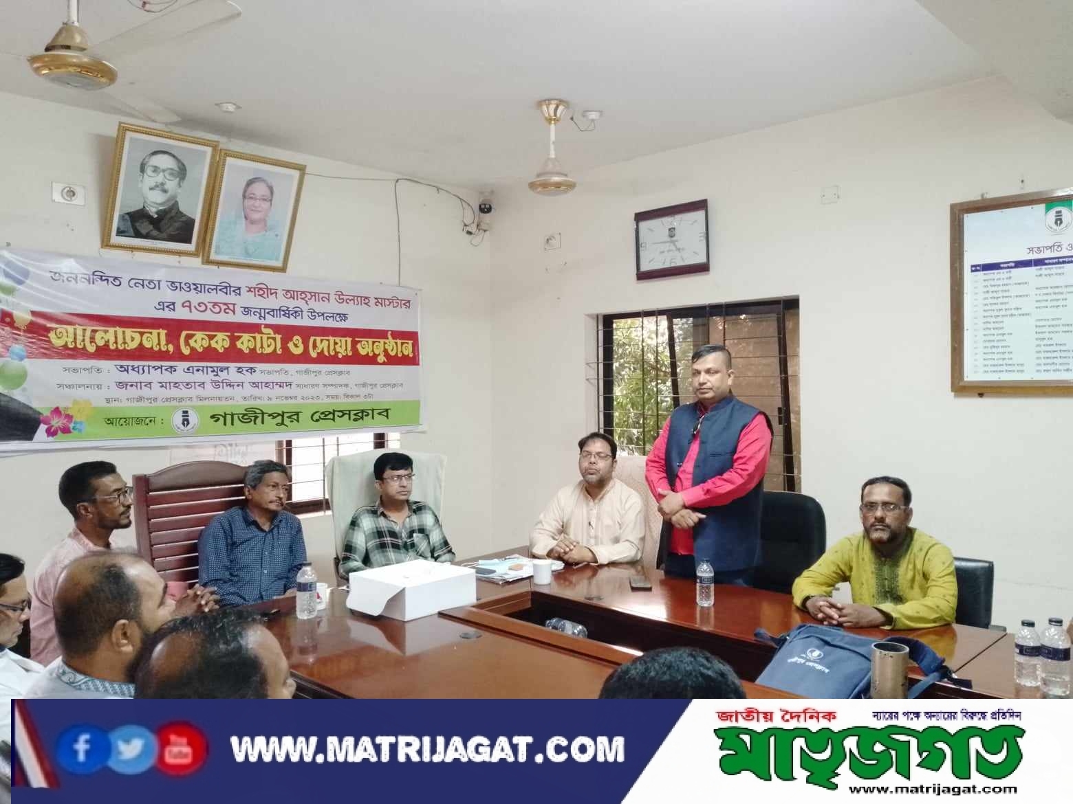 গাজীপুর প্রেসক্লাবে আহসান উল্লাহ মাষ্টারের জন্মদিন পালিত