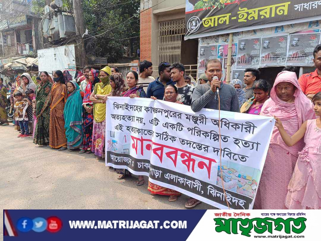 গৃহবধূ মঞ্জুরী’র মৃত্যুর সঠিক তদন্তের দাবিতে ঝিনাইদহে মানববন্ধন