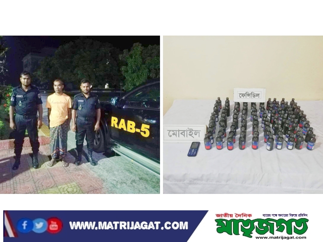 গোদাগাড়ীতে র‍্যাব-৫ এর অভিযানে ৯৮ বোতল ফেন্সিডিলসহ ১ জন মাদক ব্যবসায়ী আটক
