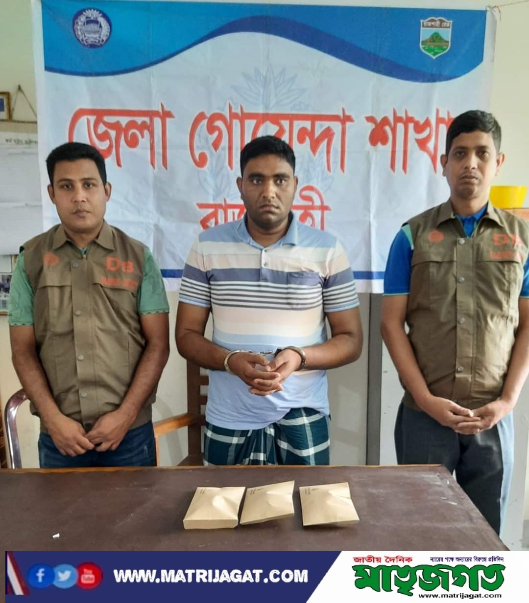 রাজশাহী গোদাগাড়ীতে ৫০ (পঞ্চাশ) গ্রাম হেরোইন সহ ০১ জন আসামী গ্রেফতার ।পুলিশ সুপার, রাজশাহী এ বি এম মাসুদ হোসেন, বিপিএম (বার) ও অতিরিক্ত পুলিশ সুপার (ক্রাইম অ্যান্ড অপস্) সনাতন চক্রবর্তী দিক নির্দেশনায় ওসি ডিবি মোঃ রবিউল ইসলাম এর নেতৃত্বে এসআই (নিঃ) মোঃ ইনামুল ইসলাম ও সঙ্গীয় অফিসার-ফোর্স এর সহায়তায় ধৃত আসামী ১। মোঃ সোহেল রানা (৪০), পিতা-মোঃ সাইদুর রহমান, মাতা-মোসাঃ সেলিনা বেগম, সাং-মাদারপুর, থানা-গোদাগাড়ী, জেলা-রাজশাহীকে ইং-০৫/০৫/২০২২ তারিখ ভোর ০৫ঃ৪০ ঘটিকায় নিজ বসত বাড়ীর গেটের সামনে মাদকদ্রব্য হেরোইন বিক্রয়ের জন্য অবস্থান করাকালে নিজ হেফাজত হতে ৫০ (পঞ্চাশ) গ্রাম হেরোইন (যাহার আনুমানিক মূল্য ৫,০০,০০০/- টাকা) সহ গ্রেফতার করেন। এ সংক্রান্তে ধৃত আসামীর বিরুদ্ধে গোদাগাড়ী মডেল থানায় মামলা রুজু করা হয়েছে। মামলাটি তদন্তাধীন