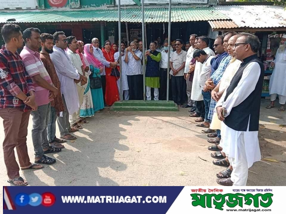 এবং দলীয় পতাকা উত্তোলন করেন উপজেলা আওয়ামীলীগের ,সাধারণ সম্পাদক জামালউদ্দিন মন্ডল