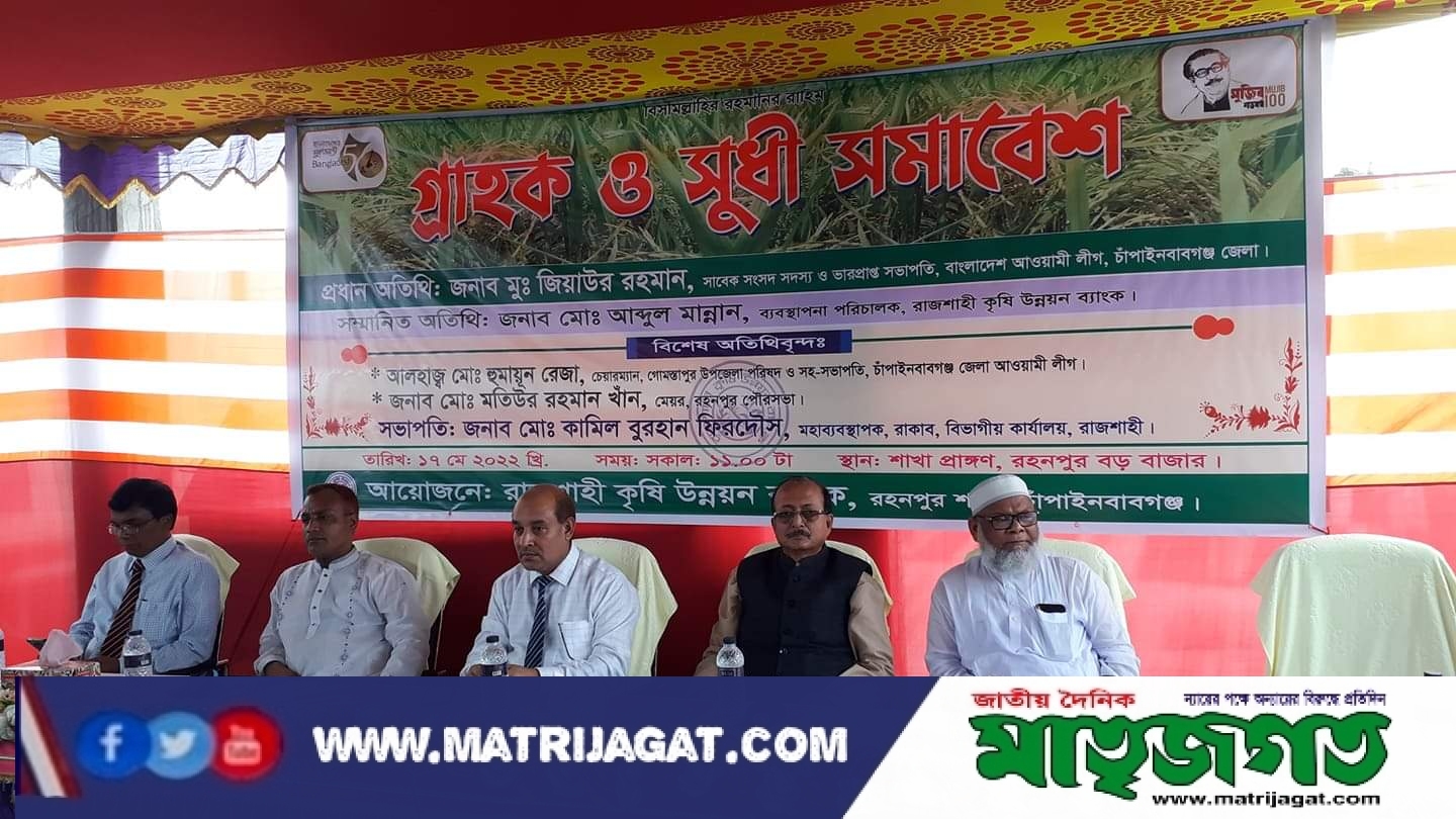 চাঁপাইনবাবগঞ্জ জেলার গোমস্তাপুর উপজেলায় রাজশাহী কৃষি উন্নয়ন ব্যাংক রহনপুর শাখা কর্তিক আয়োজিত মঙ্গলবার ১৭মে সকাল ১১ টায় রহনপুর বড় বাজার শাখা প্রাঙ্গণে এক গ্রাহক ও সুধী সমাবেশ অনুষ্ঠিত হয় ।
