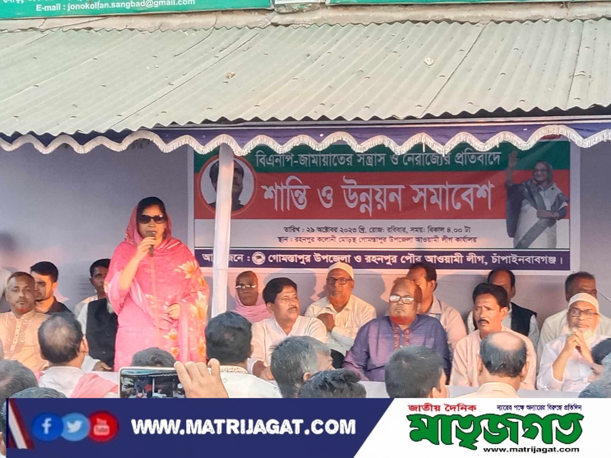 গোমস্তাপুরে বিএনপি-জামায়াতের সন্ত্রাস ও নৈরাজ্যের প্রতিবাদে বিক্ষোভ মিছিল ও শান্তি সমাবেশ
