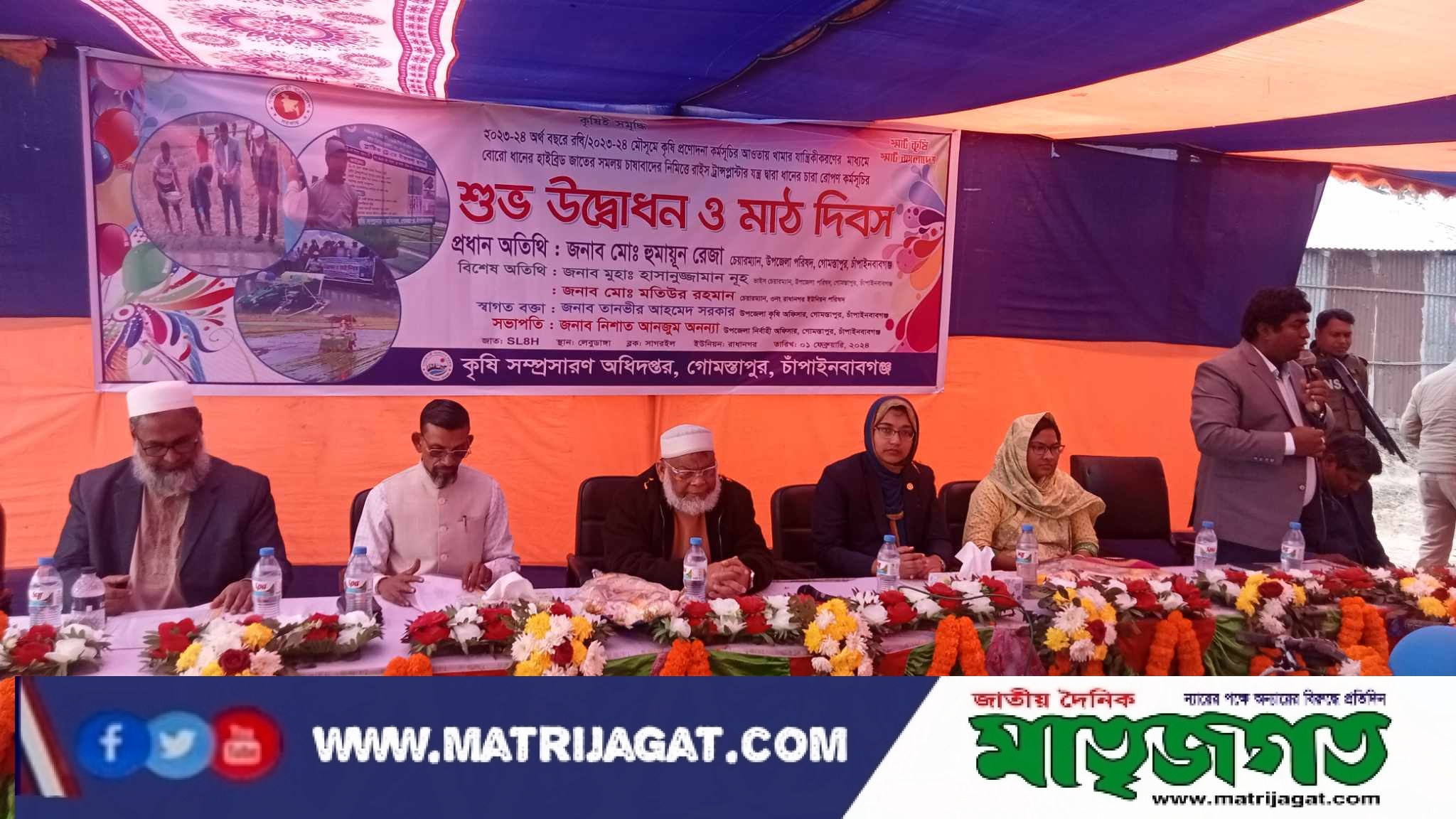 গোমস্তাপুর উপজেলা নির্বাহী অফিসার( ইউএনও ) নিশাত আনজুম আনন্যা, এতে প্রধান অতিথি হিসেবে উপস্থিত ছিলেন। গোমস্তাপুর উপজেলা পরিষদের চেয়ারম্যান হুমায়ূন রেজা, স্বাগত বক্তব্য রাখেন,উপজেলা কৃষি অফিসার তানভীর আহমেদ সরকার।