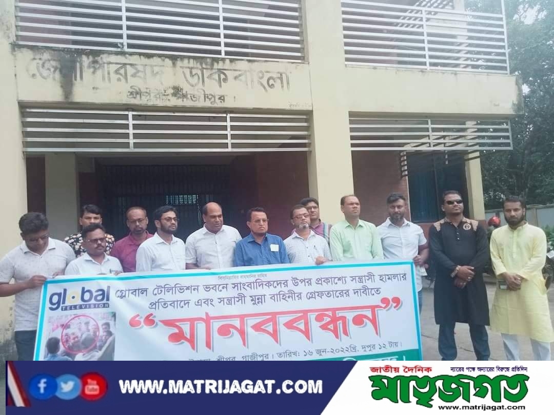গ্লোবাল টিভি সাংবাদিকদের ওপর হামলার প্রতিবাদে শ্রীপুরে সাংবাদিকদের মানববন্ধন