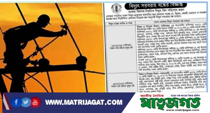 যেখানে বলা হয়েছে আগামীকাল শনিবার (১৫ নভেম্বর) ও পরদিন রবিবার (১৬ নভেম্বর) চট্টগ্রাম নগরী ও আশপাশের বেশ কয়েকটি এলাকায় নির্দিষ্ট সময়ের জন্য বিদ্যুৎ সরবরাহ বন্ধ থাকবে।
