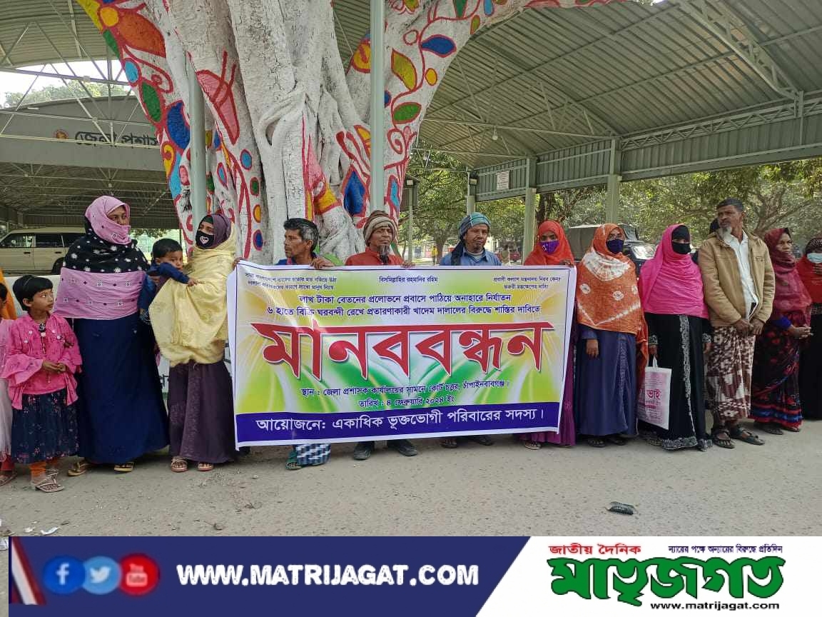 চাঁপাইনবাবগঞ্জে আদম ব্যবসায়ী খাদেমের প্রতারণার শিকার হয়ে ভুক্তভোগি পরিবারের মানববন্ধন