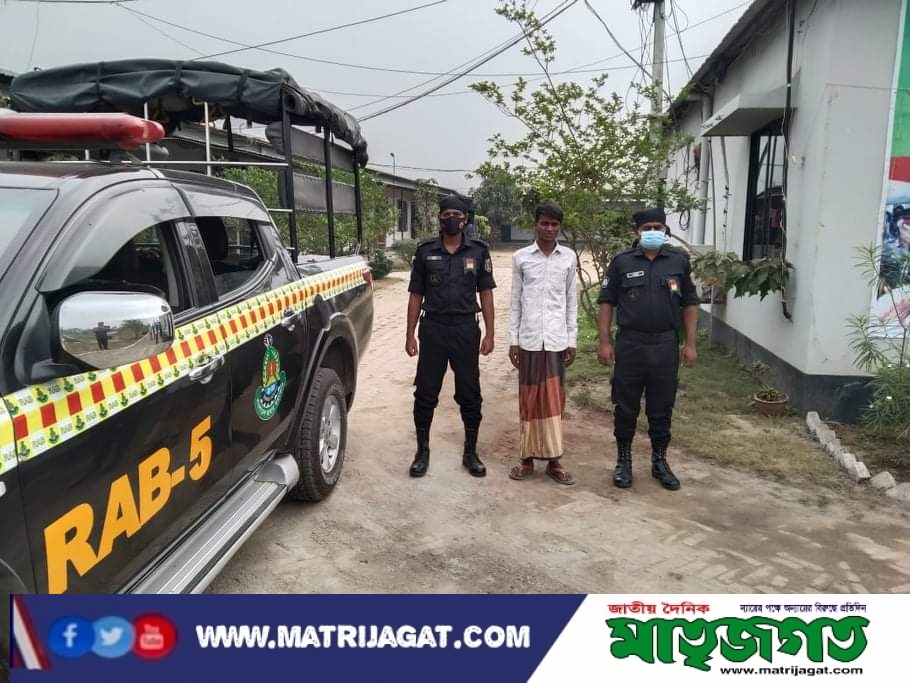 সিপিসি-১, চাঁপাইনবাবগঞ্জ ক্যাম্প, র্যাব-৫, রাজশাহীর একটি অপারেশন দল অদ্য ২৯ মার্চ ২০২২ ইং তারিখ ০৮৫৫ ঘটিকায় গোয়েন্দা তথ্যের ভিত্তিতে চাঁপাইনবাবগঞ্জ জেলার সদর থানাধীন রানীহাটি ইউনিয়নের বহরম হঠাৎপাড়া গ্রামস্থ মহসিন চেয়ারম্যান এর আম বাগানের পূর্ব পার্শ্বে হতে কোম্পানী উপ অধিনায়ক অতিরিক্ত পুলিশ সুপার মোঃ জাহিদুল ইসলাম এর নেতৃত্বে একটি মাদক বিরোধী অভিযান পরিচালনা করে (ক) ফেন্সিডিল-২৮ (আঠাশ) বোতল (খ) মোবাইল ফোন-০১(এক)টি, (গ) সীমকার্ড-০১(এক)টি এবং (ঘ) ফেন্সিডিল বহনকারী ব্যাগ- ০১(এক)টিসহ আসামী ১। মোঃ মামুন (৩২), পিতা-মোঃ আঃ লতিফ, মাতা-মোছাঃ রেহেনা বেগম, সাং-বহরম হঠাৎপাড়া, থানা ও জেলা-চাঁপাইনবাবগঞ্জ ’কে হাতেনাতে গ্রেফতার করে।