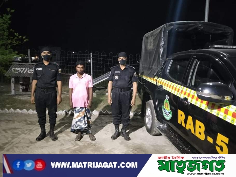 সিপিসি-১, চাঁপাইনবাবগঞ্জ ক্যাম্প, র্যাব-৫, রাজশাহীর একটি অপারশন দল অদ্য ২৮ মার্চ ২০২২ ইং তারিখ ১৮:২০ ঘটিকায় গোয়েন্দা তথ্যর ভিত্তিতে, চাঁপাইনবাবগঞ্জ জেলার শিবগঞ্জ থানাধীন নয়ালাভাঙ্গা ইউনিয়নের কমলাকা কমলাকান্তপুর গ্রামস্ত সাব-রেজিষ্ট্রার আম বাগানের পার্শ্ব কমলাকান্তপুর কবরস্থানের সামন কাম্পানী অধিনায়ক লে কমান্ডার রুহ-ফি-তাহমিন তকির এবং কাম্পানী উপ অধিনায়ক অতিরিক্ত পুলিশ সুপার মোঃ জাহিদুল ইসলাম এর নেতৃত্বে একটি মাদক বিরাধী অভিযান পরিচালনা করে (ক) গাজা-০১ কজি (খ) মোবাইল-০১ টি (গ) সীমকার্ড-০২টি এবং (ঘ) মাদক বহনকারী ব্যাগ-০১টিসহ আসামী ১। ১। মোঃ আজম আলী (৩৫), পিতা- মোঃ আব্দুল কাইয়ুম, মাতা-মাছাঃ ববিয়ারা বগম, সাং-রামচদ্রপুর হঠাৎপাড়া, থানা- শিবগঞ্জ, জেলা-চাঁপাইনবাবগঞ্জ কে হাতেনাতে গ্রেফতার করে।