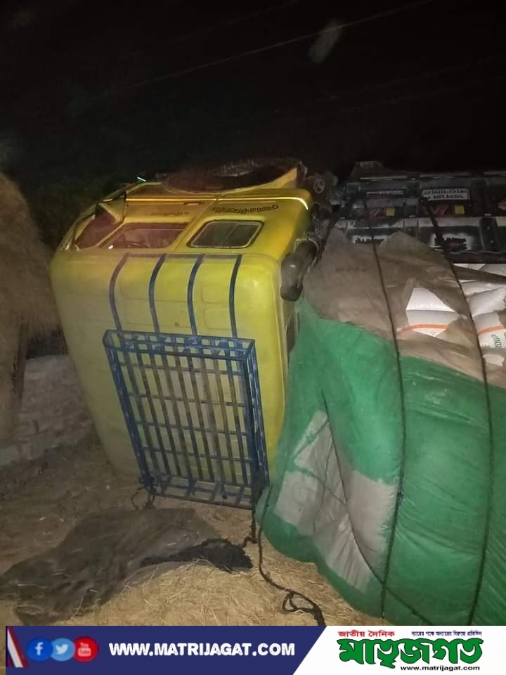 চাপাই-রাজশাহী মহাসড়কে নিয়ন্ত্রণ হারিয়ে মালবাহী ট্রাক উল্টে যায়