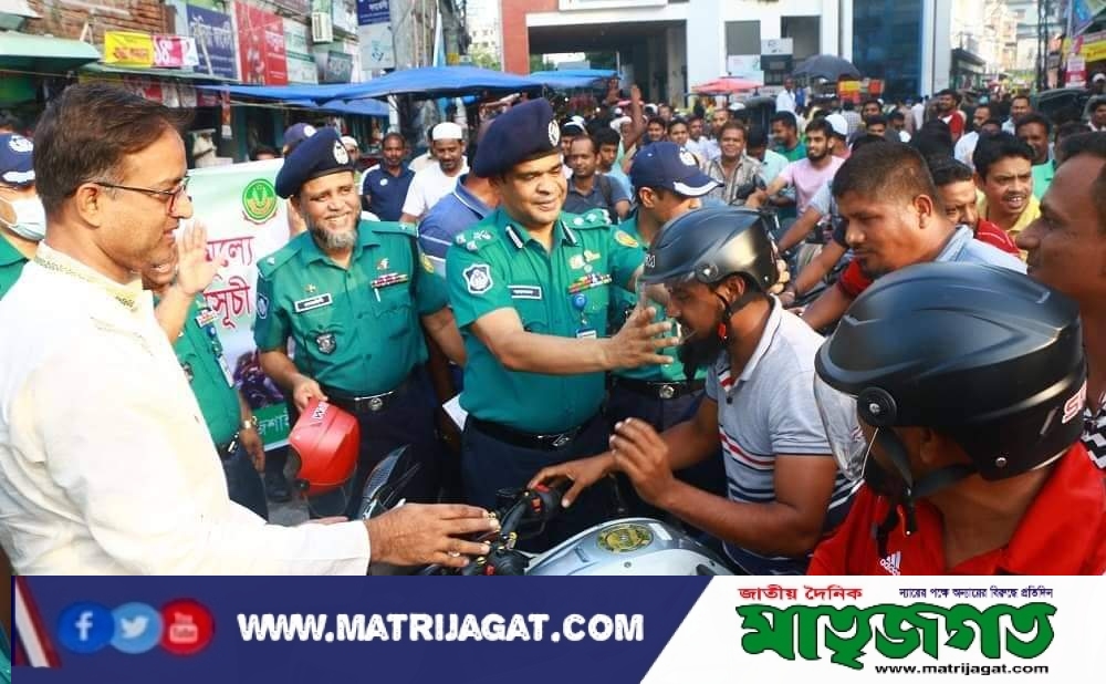 চালকদের সচেতনতা বৃদ্ধিতে আরএমপি পুলিশের হেলমেট বিতরণ